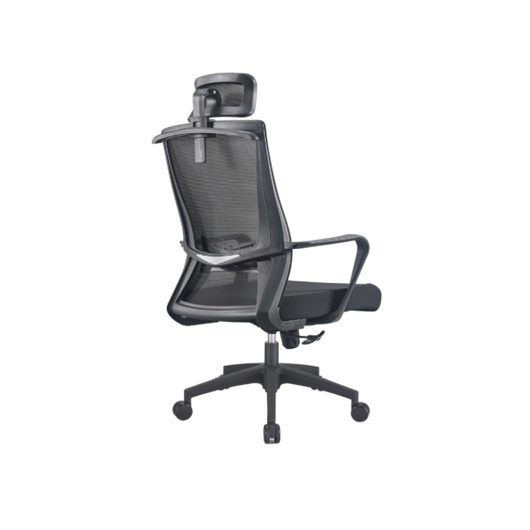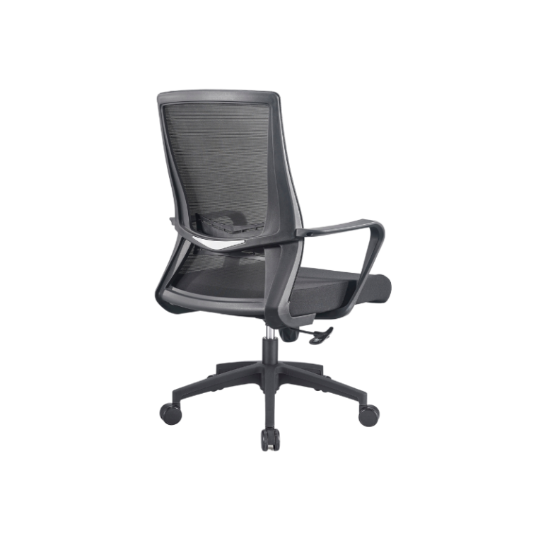 - Back: PP with fiber back frame with mesh upholsteried,fixed lumbar support.