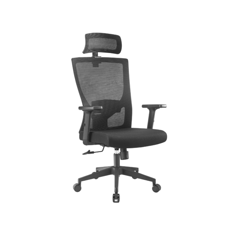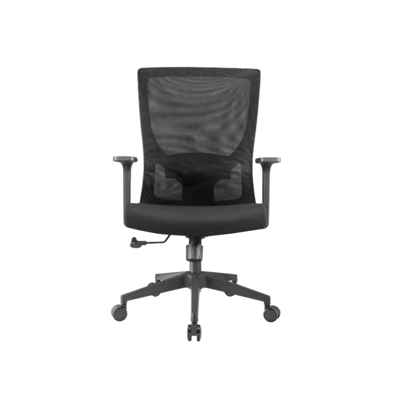 - Back: PP with fiber back frame, with fixed lumbar support, mesh upholsteried.